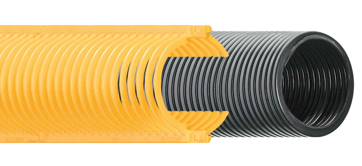 Giải pháp gia cố cho hệ thống ống ruột gà luồn cáp với e-rib được gắn vào ống xoắn, giúp ổn định và đảm bảo ống chỉ di chuyển theo một hướng. Các kích thước mới của e-rib không phụ thuộc vào nhà sản xuất ống mềm, hỗ trợ dẫn hướng mà không cần giá đỡ.